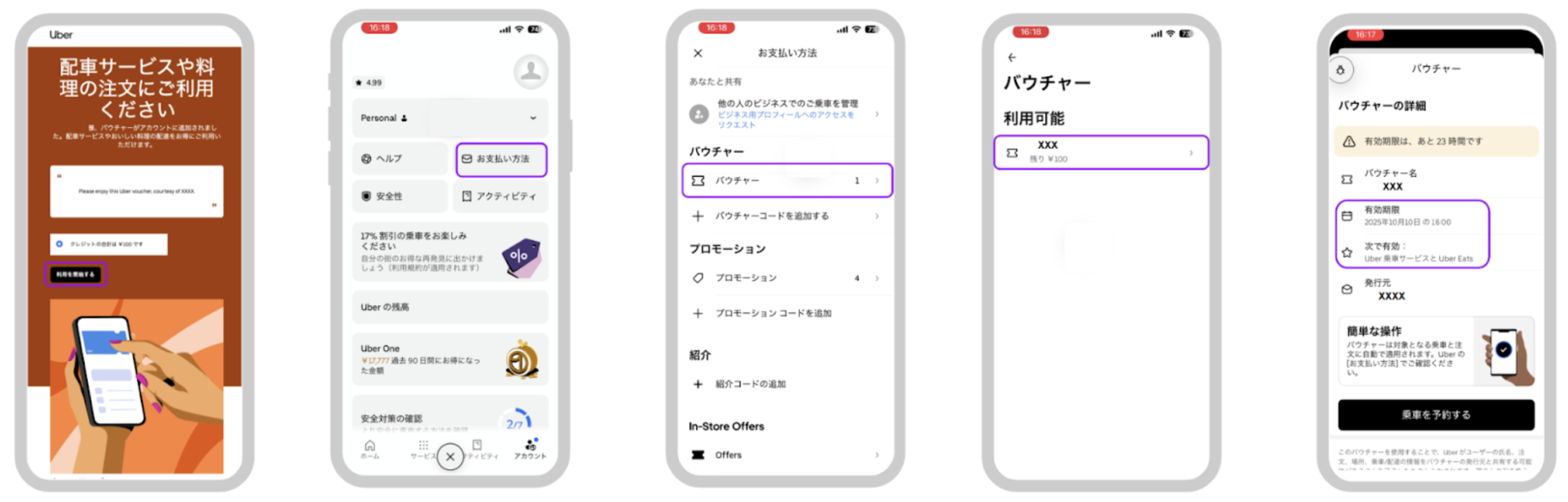 バウチャーの種類によって異なります。注文のみに利用できるもの、または注文と乗車の両方で利用できるものがあります。詳細は、上記にある「バウチャーの受け取り・利用条件の確認方法」でご確認ください。